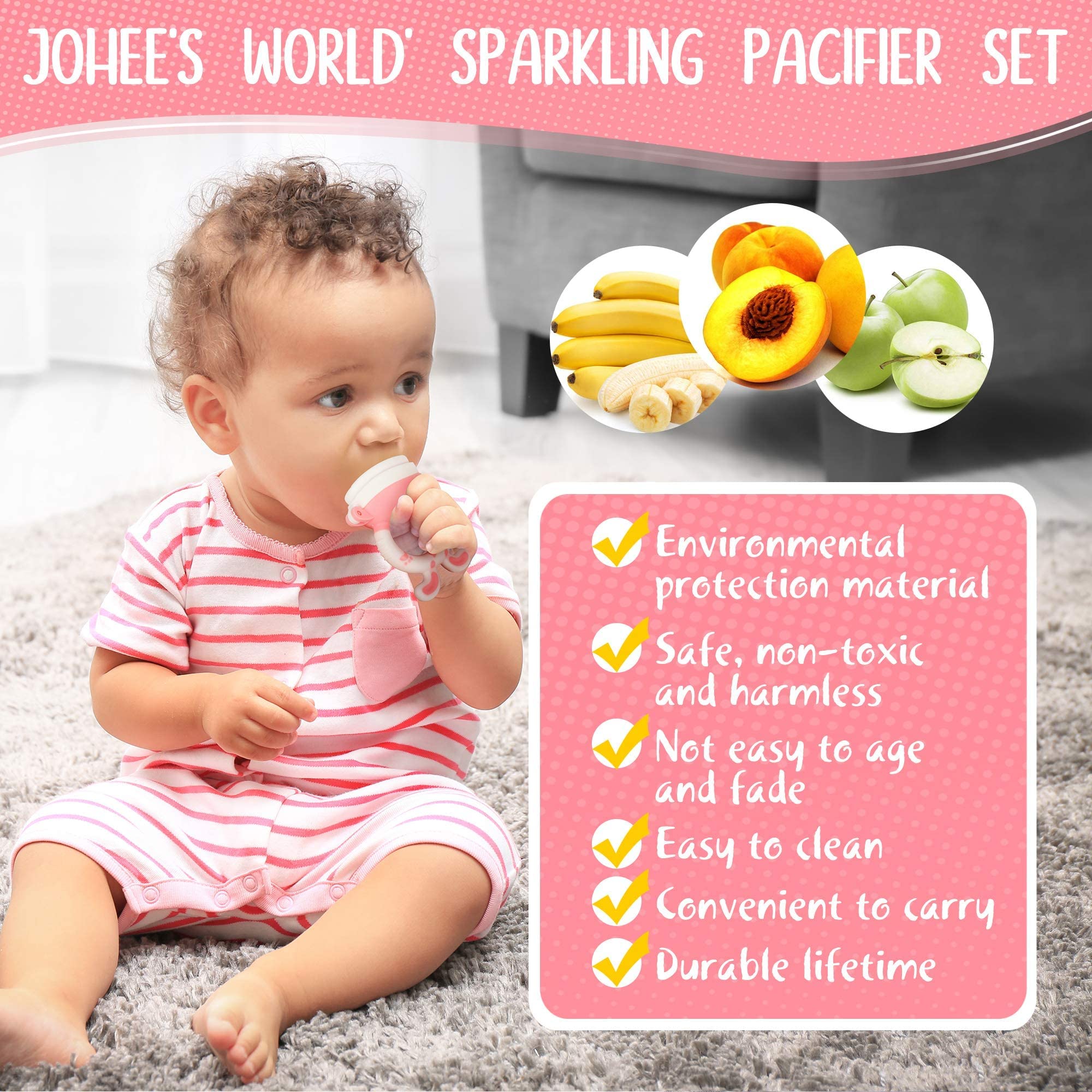 Amazon Com Johee S World Pacifier With Lid Newborn Pacifier Baby Fruit Feeder Set 4x Pacifiers 0 6 M Pacifiers 6 18 M Silicone Binky And Pacifier Holder Clips For 0 18 M Girl 9 Piece Set Baby